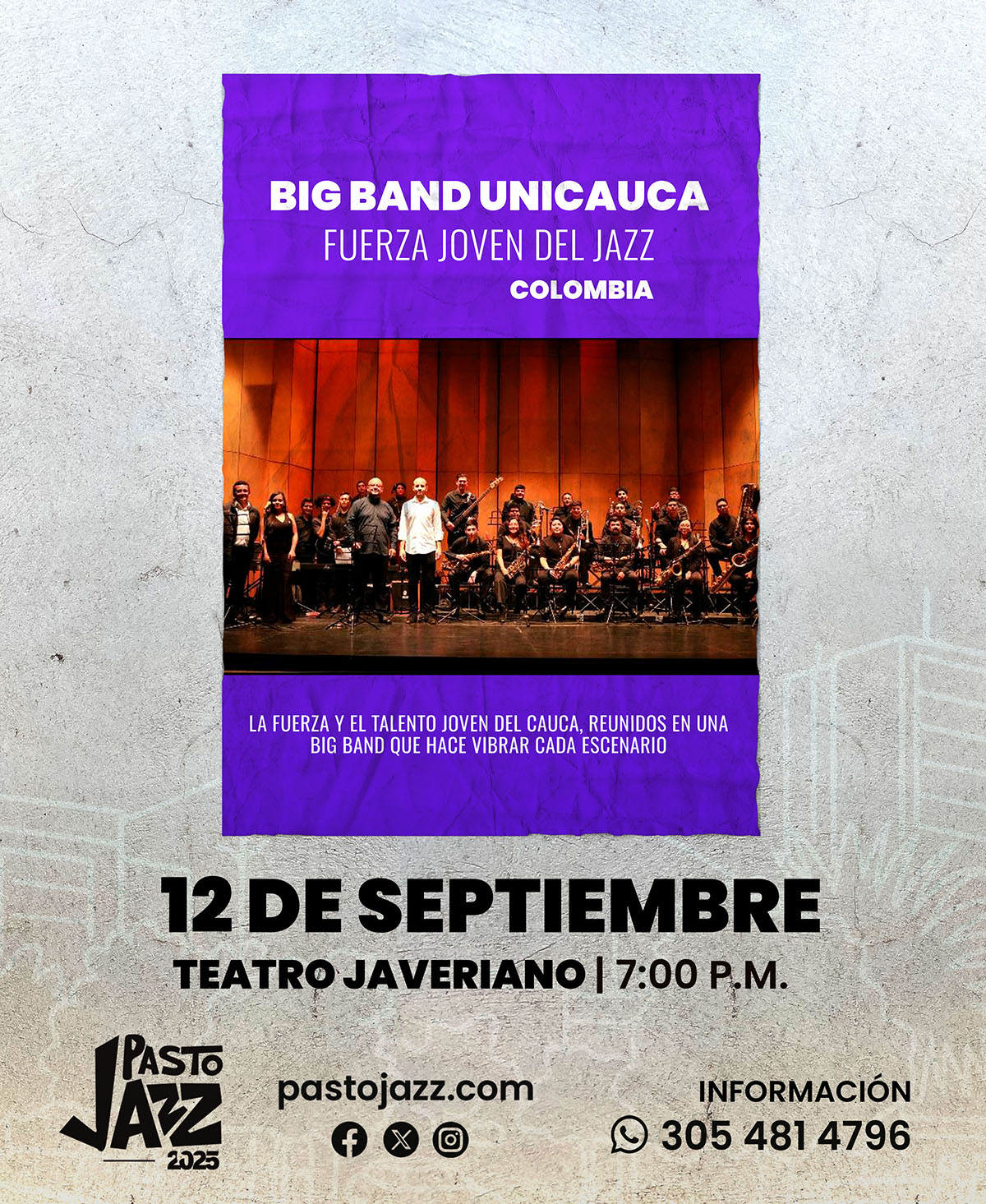 Big Band Unicauca – Fuerza Joven del Jazz La fuerza y el talento joven del Cauca, reunidos en una big band que hace vibrar cada escenario.