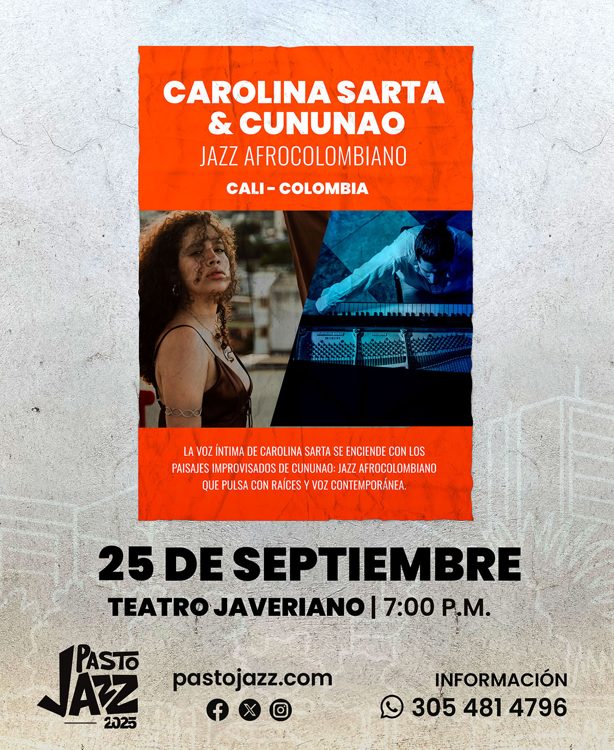 La voz íntima de Carolina Sarta se enciende con los paisajes improvisados de Cununao: jazz afrocolombiano que pulsa con raíces y voz contemporánea.